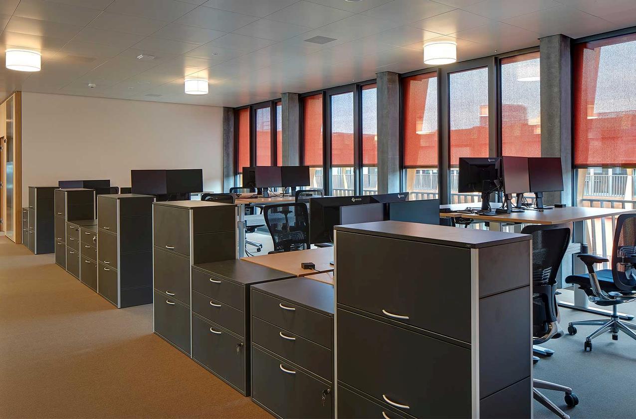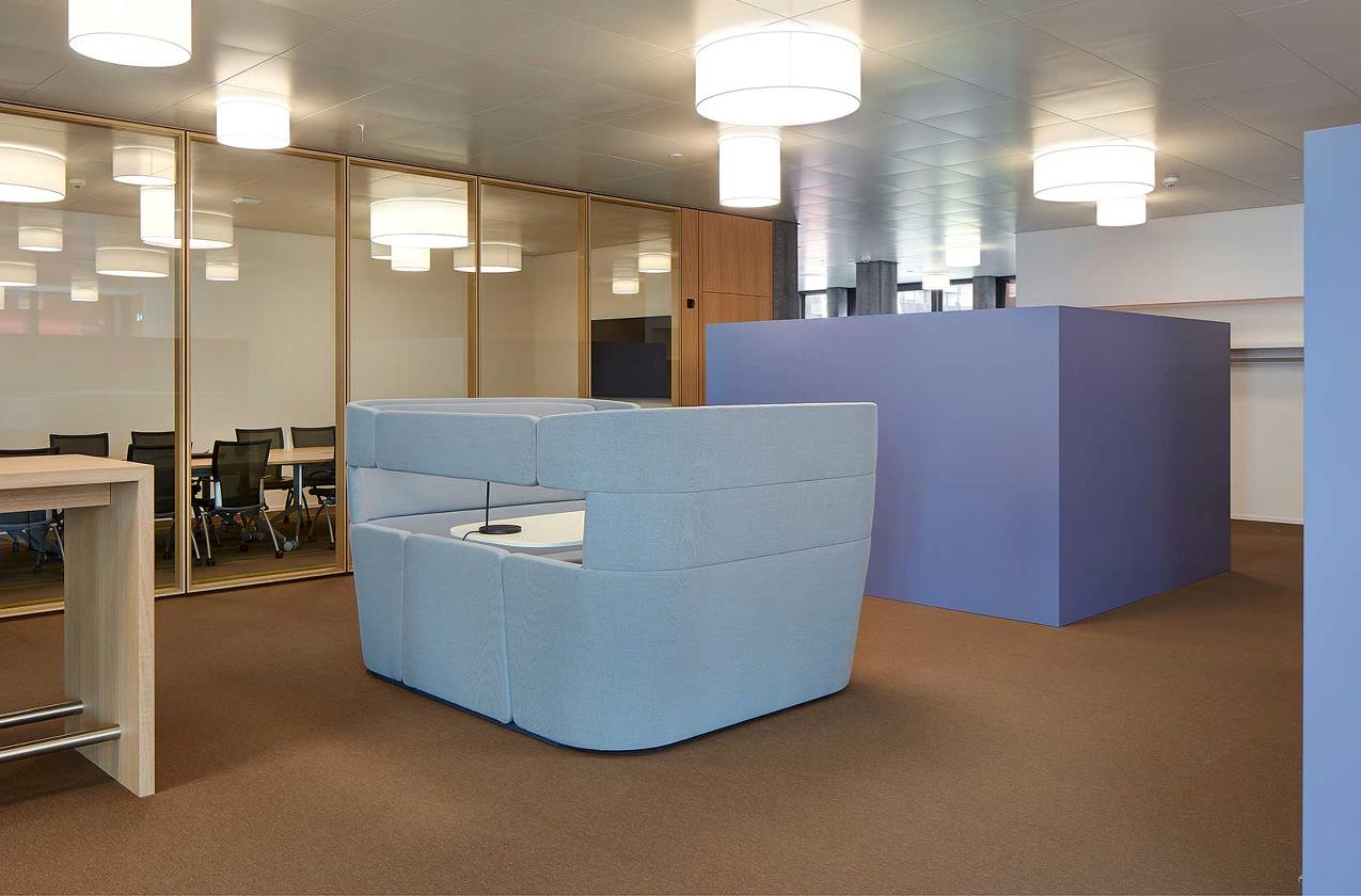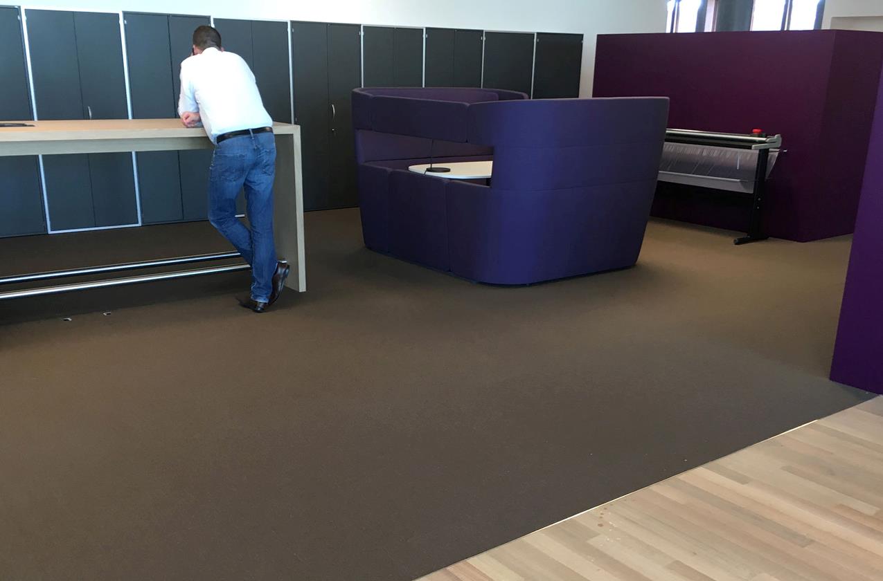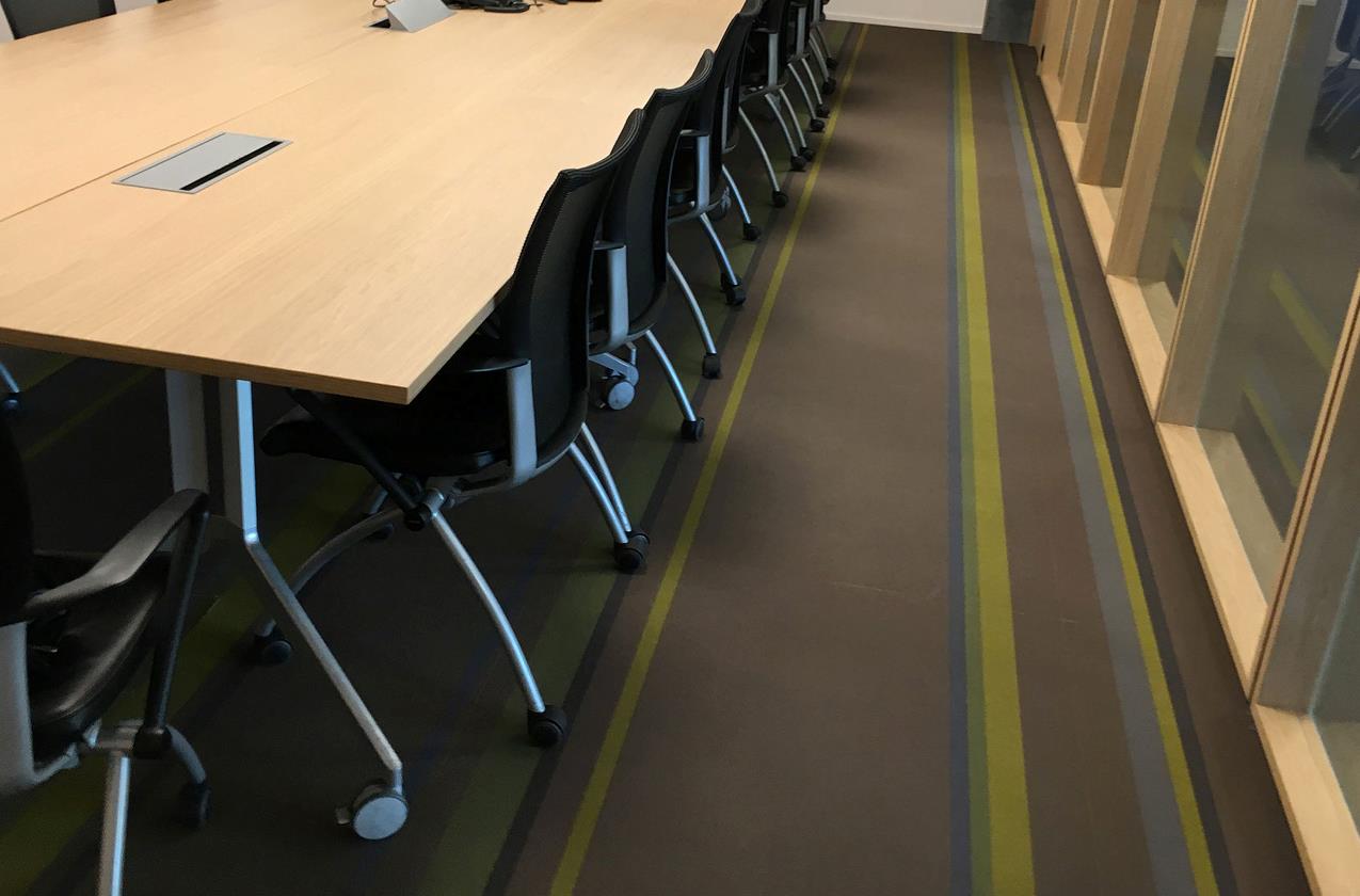 Die Bodenbelagwahl für den größten Teil des neuen Hauptsitzes fiel auf die hochqualitativen Teppichfliesen aus Fletco. Fletco hat rund 5900 m2 Teppichfliesen geliefert: die Mehrheit der Teppichfliesen ist in der Teppichqualität Nordic in der Sonderform ZigZag-Tiles® geliefert und ein kleiner Teil als Classic Weave-Teppichfliesen, auch in der Sonderform ZigZag-Tiles®. Diese Sonderform kann in gleicher Richtung verlegt werden und dadurch ergibt sich eine homogene Flächenwirkung mit wenig störenden Übergängen im Bereich der Kanten. Darüber hinaus ist ein digitalbedrucktes Sonderdesign als große Teppichfliesen auch geliefert worden, die in verschiedenen Konferenzräumen installiert sind.